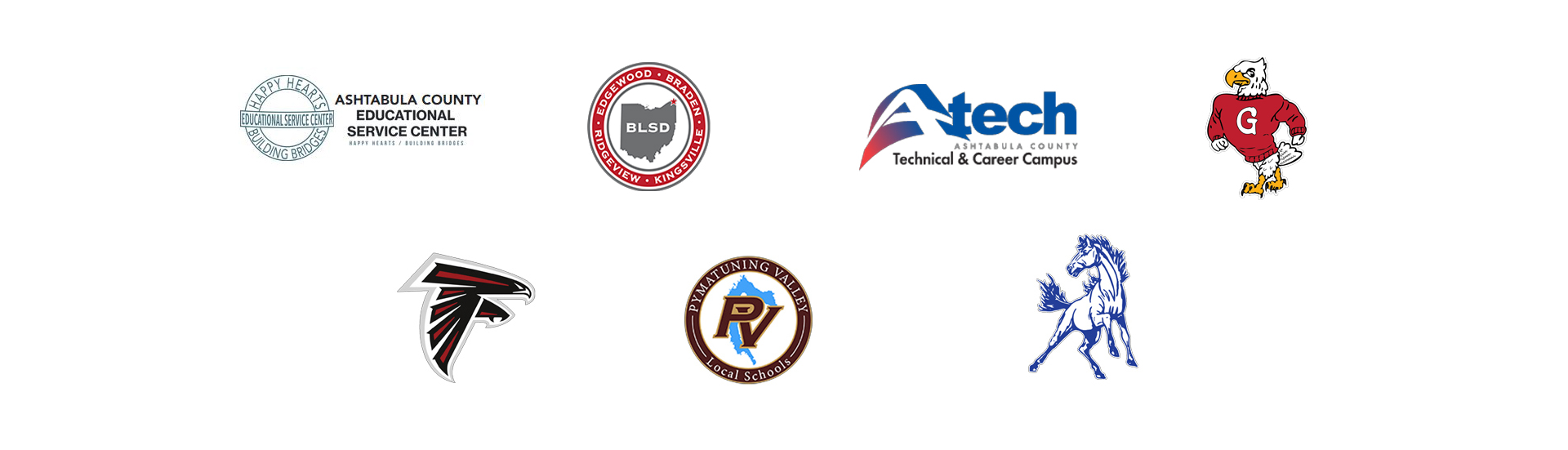 Ashtabula County Educational Service Center, Ashtabula County Technical & Career Center, Buckeye Local Schools, Geneva Area City Schools, Grand Valley Local Schools, Jefferson Area Local Schools, and Pymatuning Valley Local Schools.